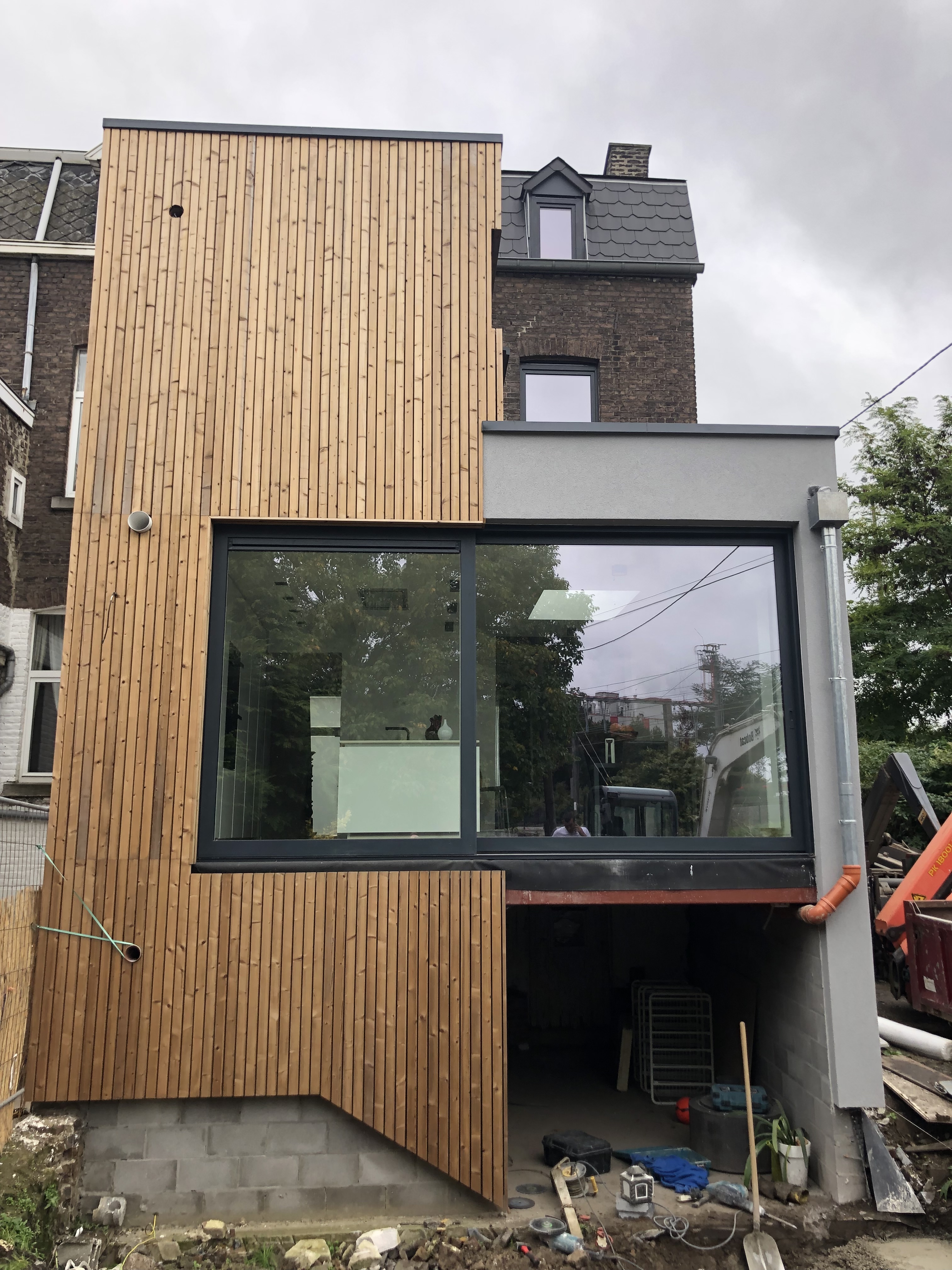 L’intervention s’est transformée en un véritable projet d’extension et de rénovation de l’ensemble de l’habitation. L’extension se compose de deux volumes sobres, précisément dessinés pour répondre aux besoins identifiés : créer une nouvelle cuisine et une nouvelle salle de bain.
