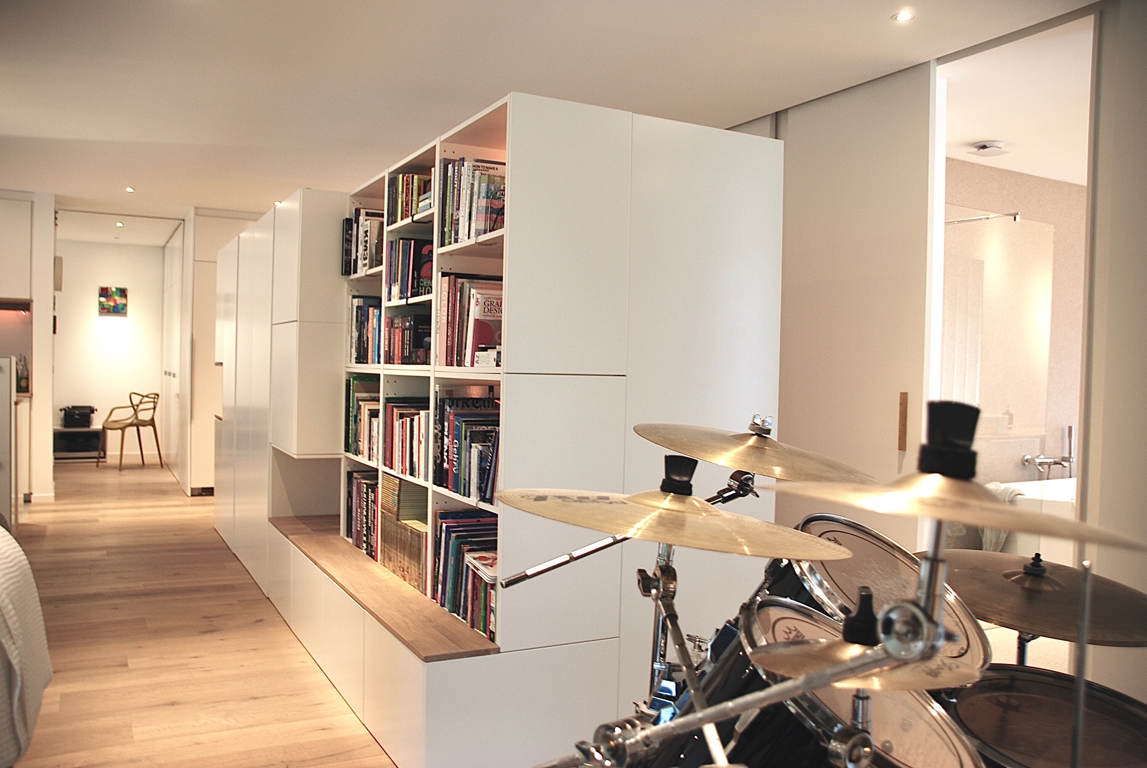 L’organisation intérieure s’articule autour d’un vaste séjour de vie, véritable cœur de la maison. Autour de cet espace central, les chambres et le bureau s’ouvrent largement, formant un ensemble fluide et continu, à l’image d’un loft. Cette conception favorise la convivialité, la lumière et les échanges entre les différents espaces.