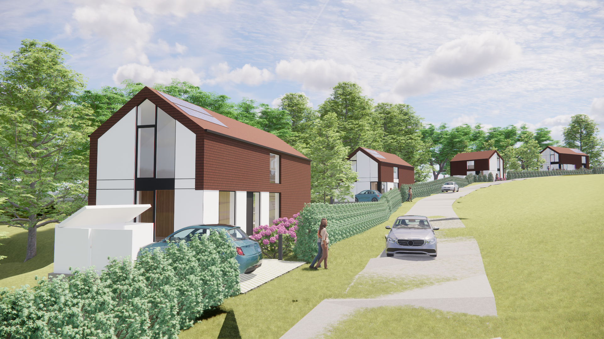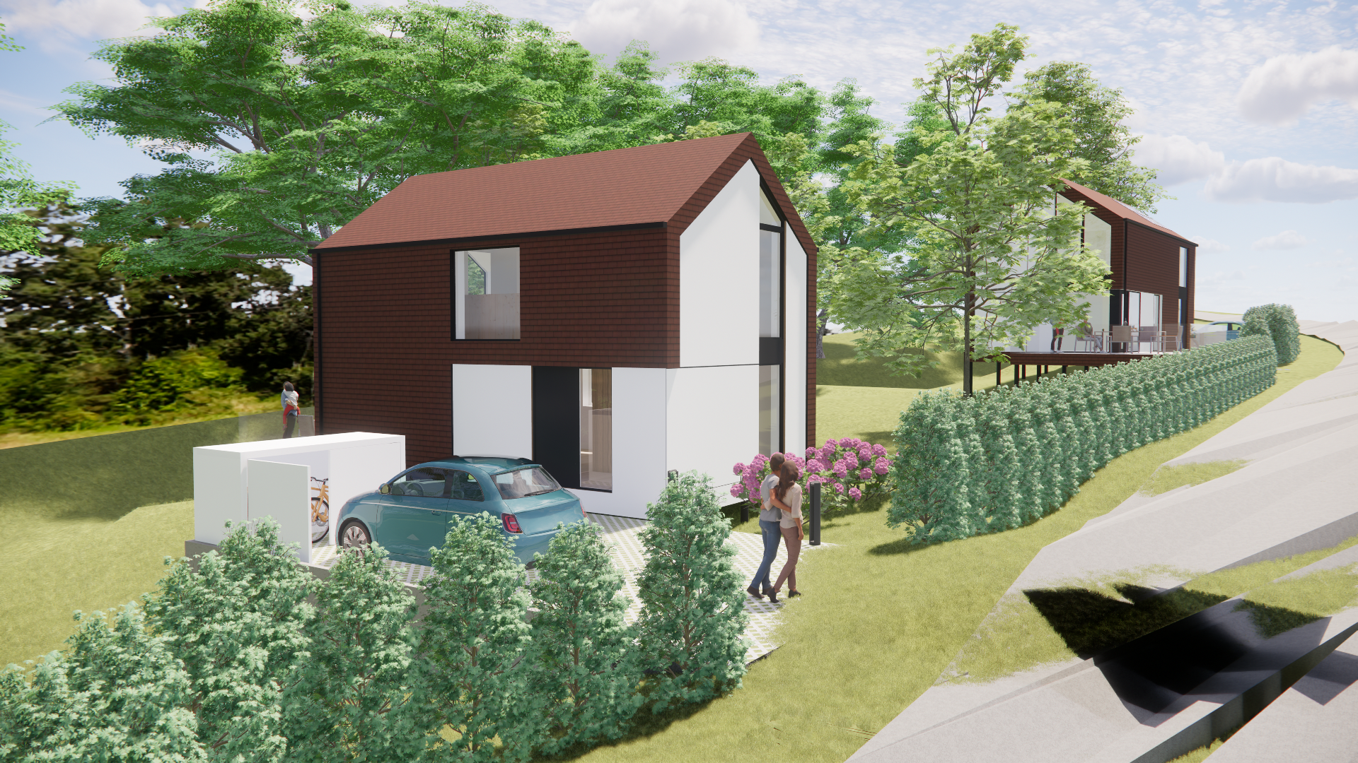 Ce projet d’habitat groupé réunit démarche constructive responsable, adaptation aux contraintes naturelles du site et volonté de créer un cadre de vie à la fois convivial, intégré et durable.