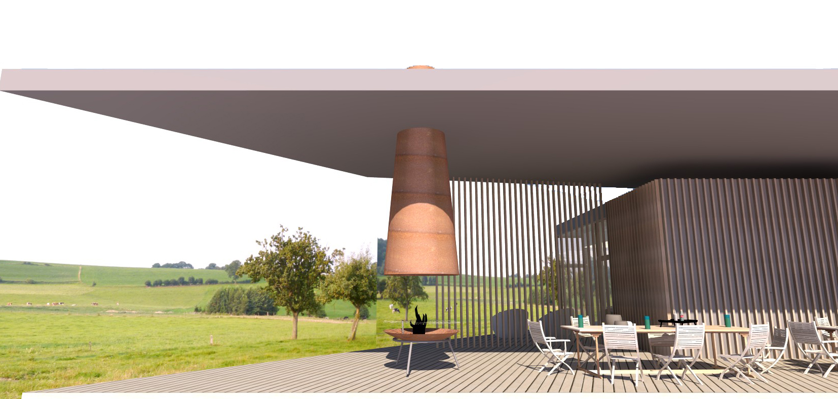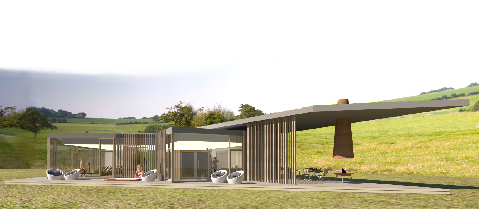 Implanté au cœur d’un environnement naturel préservé, cet espace wellness se conçoit comme un lieu de pause, de ressourcement et de reconnexion à soi. L’architecture crée un fond, un dos pour s’accoler et s’effacer au profit du paysage, créant un dialogue permanent entre les espaces intérieurs et la nature environnante.
